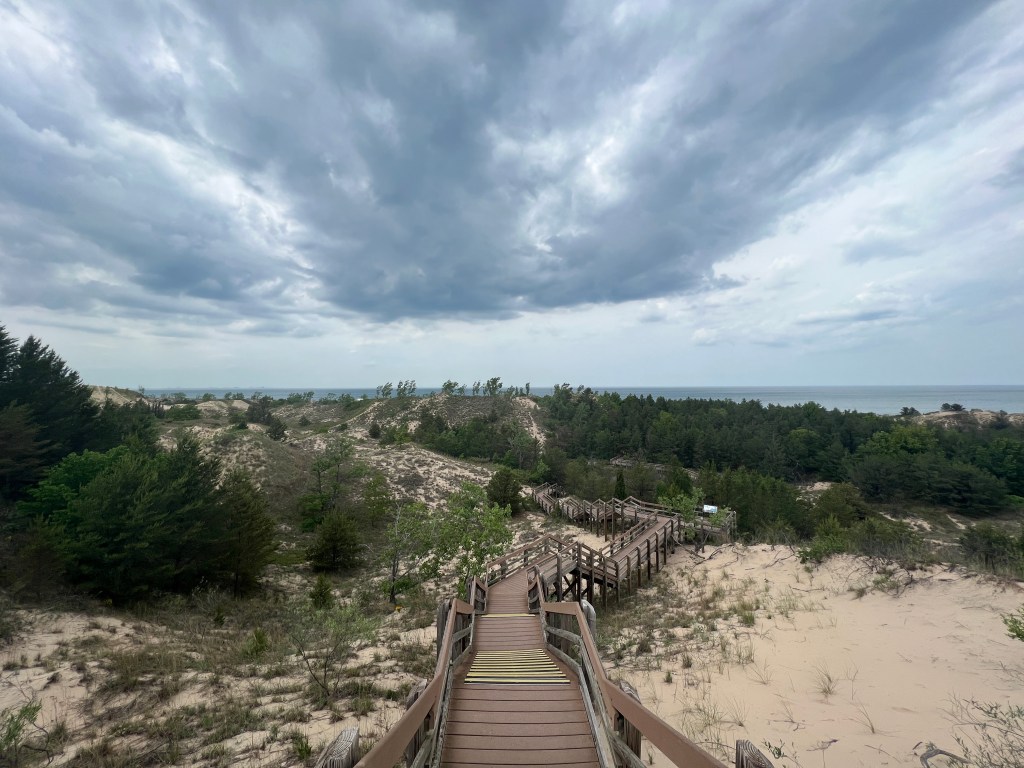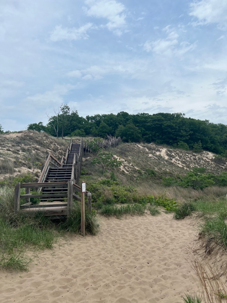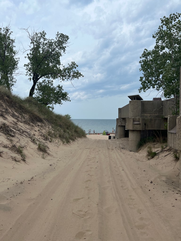 Not sure how I managed to fit as much into this day as I did, but it turned out to be quite a good one! I hadn’t yet seen any of the Great Lakes, so my first stop was the Indiana Sand Dunes, which runs right along the southern edge of Lake Michigan. The park itself is really neat, and has lots of different things to do, a real recreation hub for the area it seems like. For myself, I mostly stuck to the west beach area, after asking one of the rangers for advice. Really helpful folks! It turned out to be a good call, I took a really cool looping trail down to the beach.