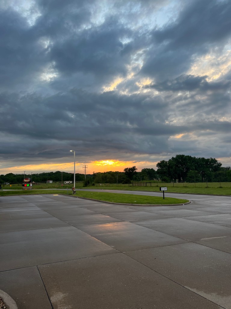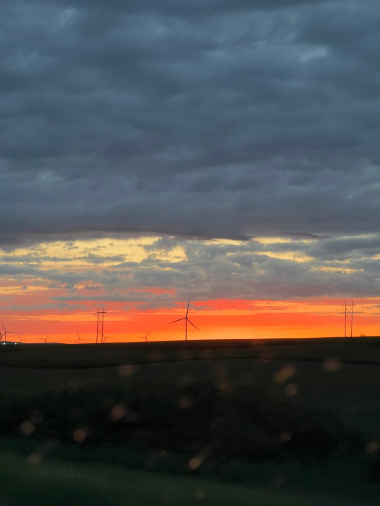 With the car and myself properly refreshed, I hit the road with no real plan other than westward. Made it to Des Moines before I decided to call it quits for the night. For the last few hours, I was driving straight into one of the more spectacular sunsets I’ve seen on this trip. Right at the peak of its color, I came over a hill to a field of wind turbines. The sight of them spinning, black against the red sky, was hauntingly beautiful, and I’ve thought of that image fairly frequently since. I took a picture, but as expected, it really didn’t capture the full effect. An unexpected sight, but I’m fairly sure it’s one that will stick with me. Definitely left an impression.